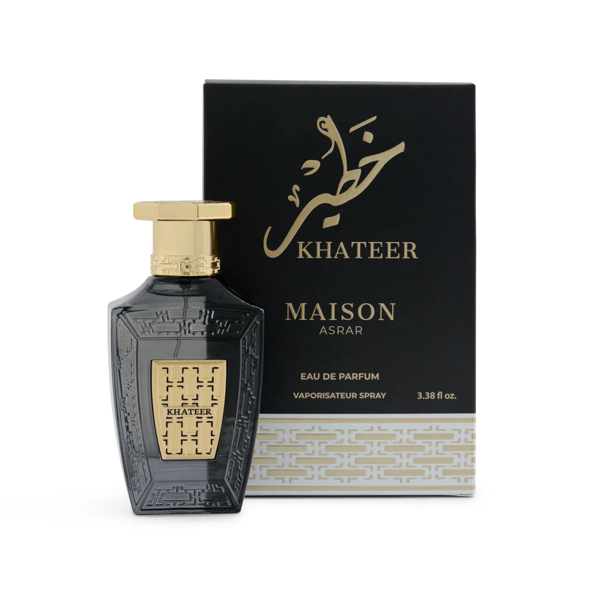 Khateer ou « extraordinaire » en arabe est un parfum boisé, aromatique et tropical plein d’énergie et de fraîcheur. Une combinaison chaleureuse et douce de notes d’agrumes de citron et d’orange se trouve sur le dessus, se développant rapidement en un cœur de notes apaisantes et fraîches de fruits, de lavande et de marine, qui forme ensuite une base boisée et luxueuse d’ambre, de patchouli et de mousse de chêne.